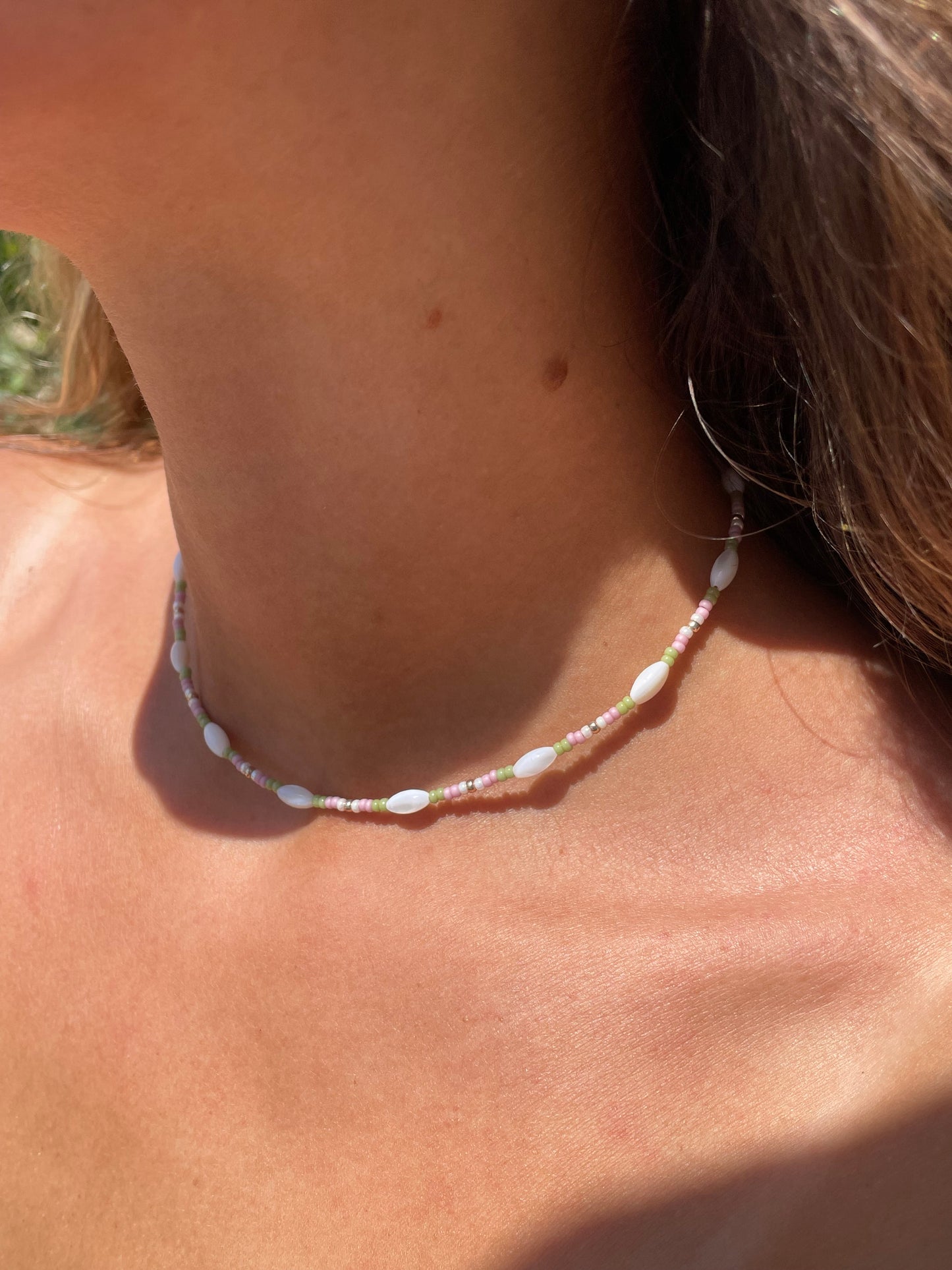 Pink matcha necklace